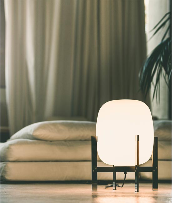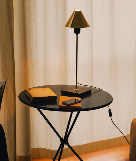 Colección de lámparas de sobremesa en tres medidas y varios colores. El proyecto se inició en el año 2014 con la lámpara de color verde como un homenaje a el mítico restaurante Giardinetto, de Barcelona. Las lámparas se pintan sumergiéndose en pintura. En 2016, 100 lámparas en 9 colores distintos formaron parte del montaje para la pasarela de Desigual, y el mismo año, fueron premiados por formar parte de la mejor instalación del Festival LlumBcn 2016. Disponible en varios colores. Medidas: 12,5x12,5x22,2 cm.