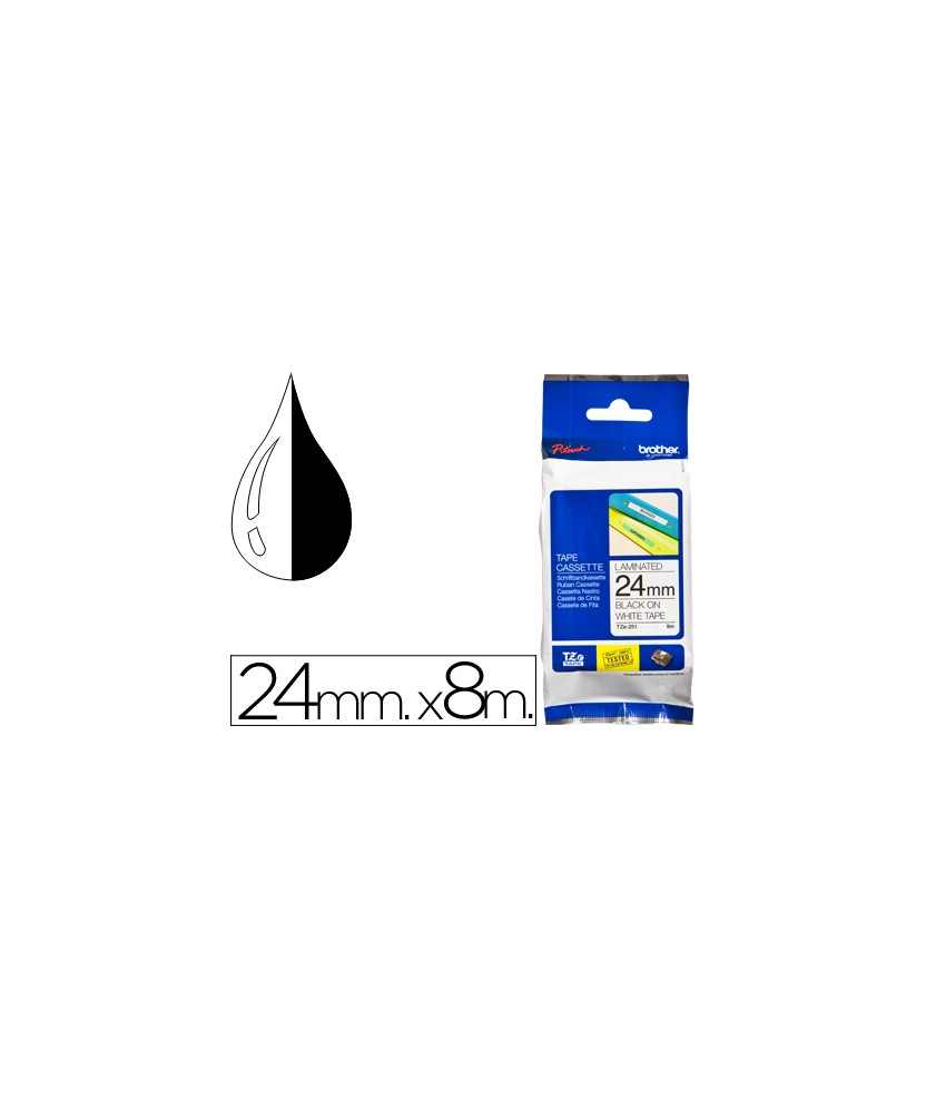 Cinta brother tze-251 blanco-negro 24mm longitud 8 m . Las cintas laminadas TZE, exclusivas de Brother, aseguran la mayor durabilidad de impresión disponible, y en combinación con la excepcional flexibilidad de nuestras rotuladoras permiten etiquetar cualquier superficie independientemente de su entorno. Estas cintas TZE están diseñadas para resistir condiciones extremas. Las pruebas realizadas han demostrado que estas cintas resisten abrasiones, electricidad y largas exposiciones a agentes químicos, rayos solares, agua y temperaturas extremas.