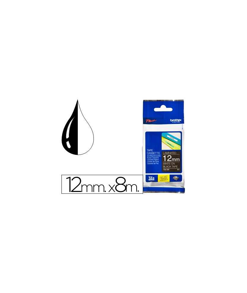 Cinta brother tze335 negro-blanco 12mm longitud 8 m . Las cintas laminadas TZE, exclusivas de Brother, aseguran la mayor durabilidad de impresión disponible, y en combinación con la excepcional flexibilidad de nuestras rotuladoras permiten etiquetar cualquier superficie independientemente de su entorno. Estas cintas TZE están diseñadas para resistir condiciones extremas. Las pruebas realizadas han demostrado que estas cintas resisten abrasiones, electricidad y largas exposiciones a agentes químicos, rayos solares, agua y temperaturas extremas.
