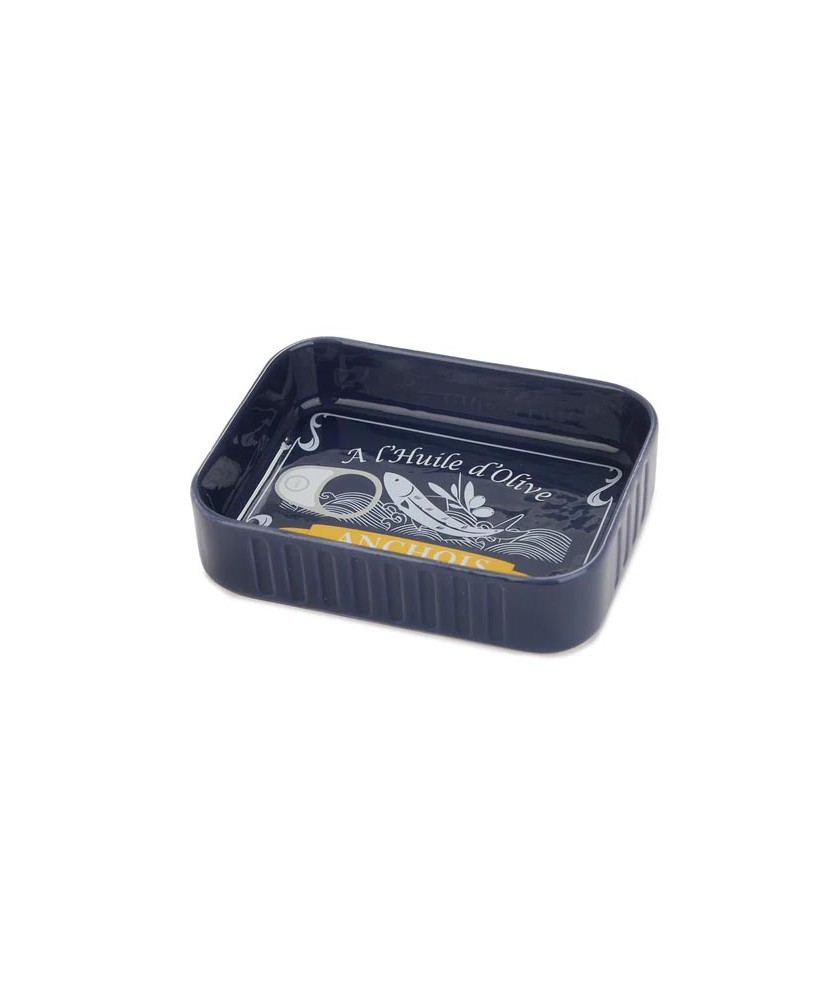 Bol d'aperitius de ceràmica pintat a mà amb disseny retro que imita una llauna d'anxoves antiga. Cada peça és única, apta per microones i rentavaixelles. Apilable per a un emmagatzematge fàcil i que estalvia espai. Ideal per servir aperitius amb estil i combinar amb la resta de la col·lecció Conserverie. Material: ceràmica. Capacitat: 200 ml. Mides: 3x12,5x9,4 cm.