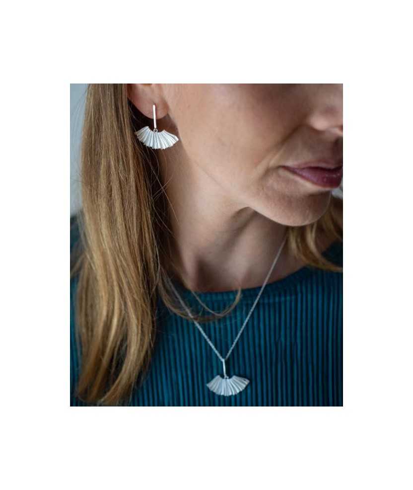 Arracades llargues de plata de llei Prisats amb acabat polit i mate satinat inspirat en la sinuositat i moviment de la túnica Delphos de Mariano Fortuny que revolucionà el món de la moda. Arracades amb moviment i tanca a pressió. Mides arracada: 29 mm.ample i 28 mm.alt. Joia artesanal de disseny propi feta íntegrament a Barcelona.