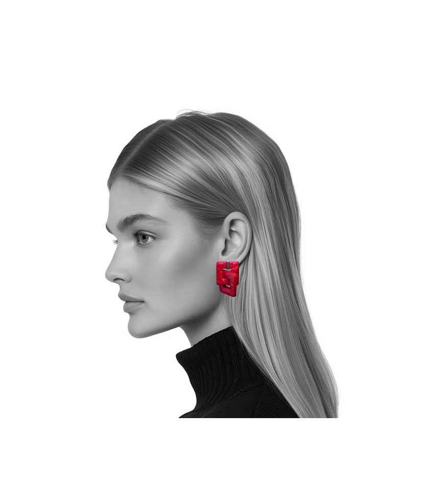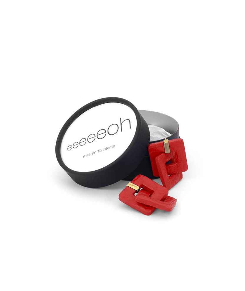 Model 22, arracada de forma quadrada, mida petita i color vermell. Eeeeeoh és més que una arracada: és un codi d'inclusió fet amb material reciclat i ecològic, creat per persones amb diversitat funcional a LaFact. Inspirada en la geometria essencial de la Bauhaus i la filosofia de la Gestalt, aquesta peça molt lleugera (menys de 3 g) connecta amb la bellesa interior i l'equilibri personal. Inclou tanca hipoal·lergènica per a una millor adaptació i comoditat.