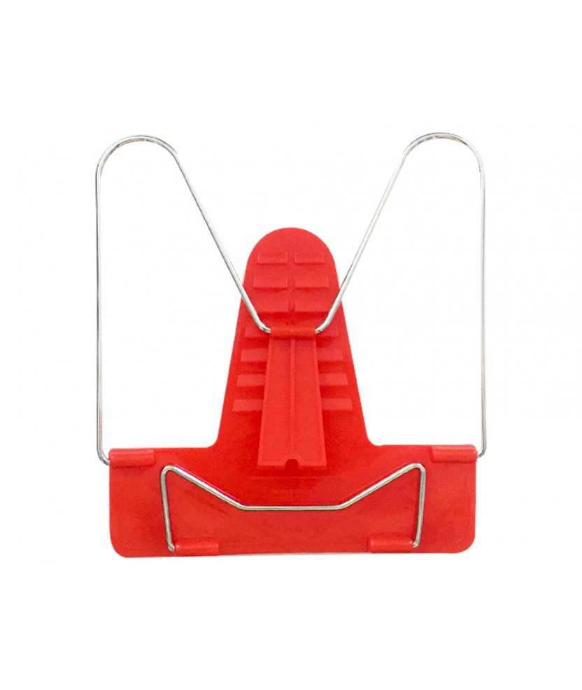 Atril liderpapel base plastico angulo ajustable soporte parte posterior 190x215 mm color rojo . Atril con base de plástico y pinza de metal. Para sujetar libros, libretas, folios... Con 7 posiciones distintas. Color rojo. Medidas: 190 x 215 mm.