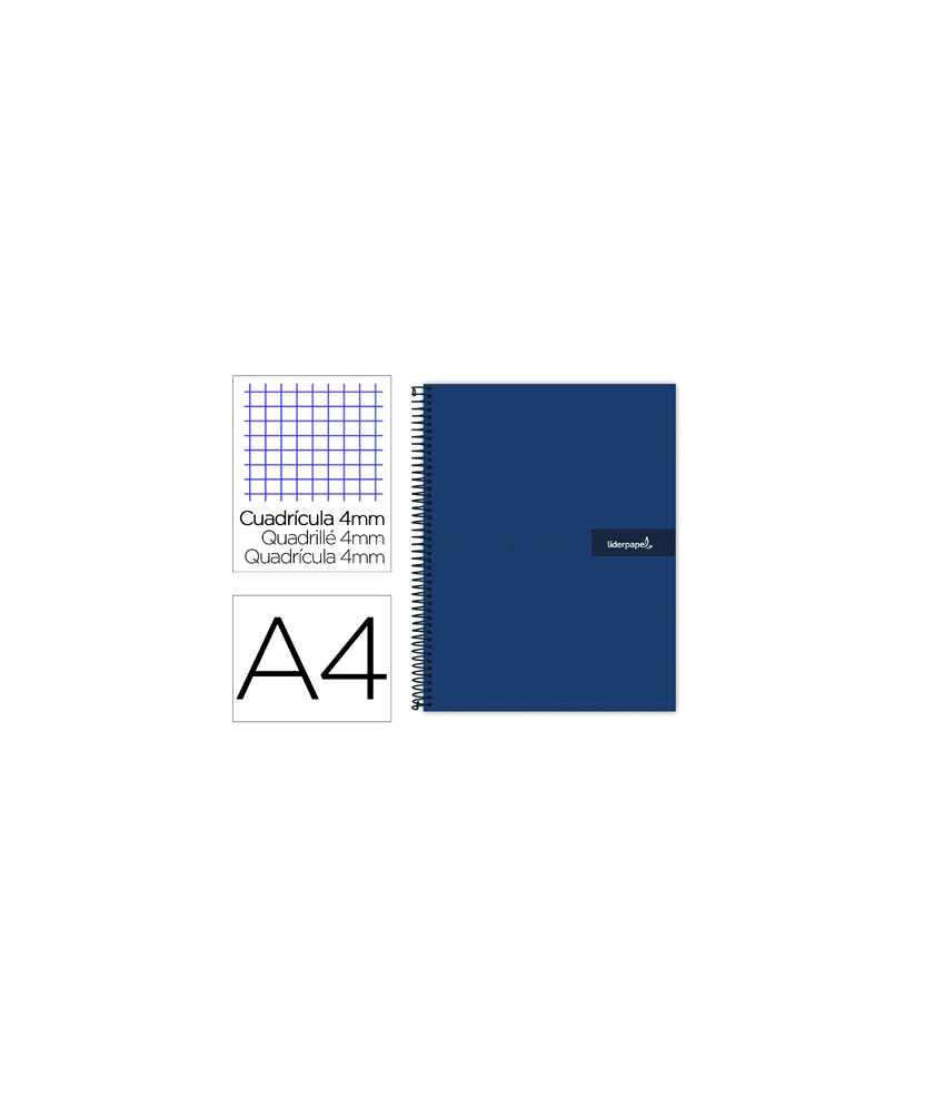 Cuaderno espiral liderpapel a4 crafty tapa forrada 80h 90gr cuadro 4mm con margen color azul marino . Tapa de cartón entrecolado de 1,5 mm de espesor, forrado con papel estucado mate de 135 g/m². Detalles en barniz UVI en portada y contraportada. Guarda interior impresa y plastificada. Papel de 90 g/m ². Espiral nylonizada. Coil-lock.