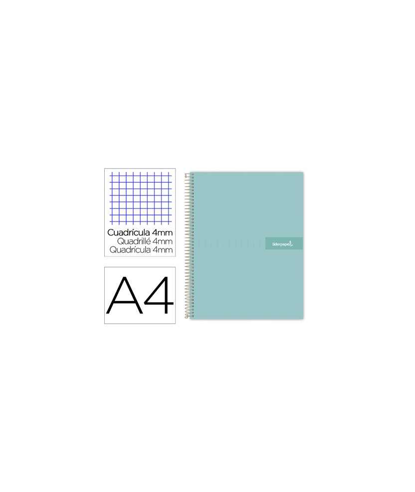 Cuaderno espiral liderpapel a4 crafty tapa forrada 80h 90gr cuadro 4mm con margen color turquesa
