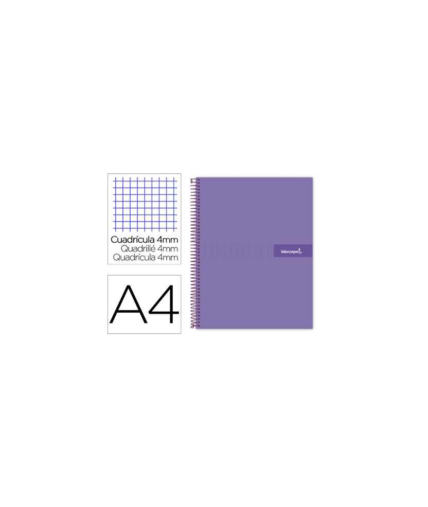 Cuaderno espiral liderpapel a4 crafty tapa forrada 80h 90gr cuadro 4mm con margen color violeta