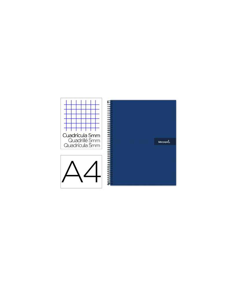 Cuaderno espiral liderpapel a4 micro crafty tapa forrada 120h 90gr cuadro 5mm 5 bandas 4 colores color azul . Tapa de cartón entrecolado de 1,5 mm de espesor, forrado con papel estucado mate de 1,35 g/m². Guarda interior impresa y plastificada. Papel de 90 g/m ². Espiral nylonizada. Coil-lock.