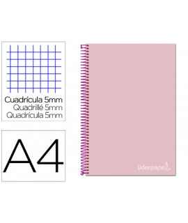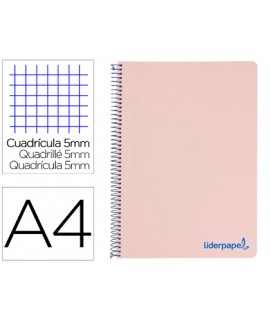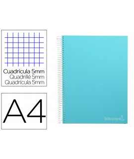 Cuaderno espiral liderpapel a4 micro jolly tapa forrada 140h 75gr cuadro 5mm 5 bandas 4 taladros color turquesa