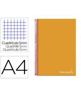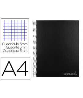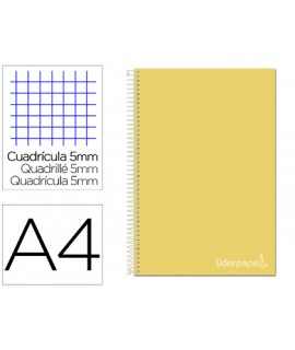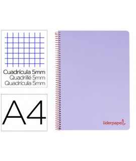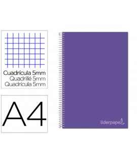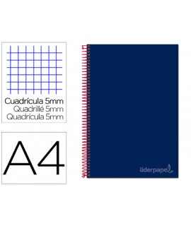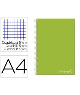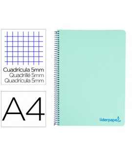 Cuaderno espiral liderpapel a4 micro jolly tapa forrada 140h 75gr cuadro 5mm 5 bandas 4 taladros color turquesa . Tapa de cartón entrecolado de 1,5 mm de espesor, forrado con papel estucado mate de 135 g/m². Guarda interior blanca. Papel de 75 g/m ². Microperforado. 140 hojas. Bandas de 5 colores. Con cajetín. Espiral nylonizada. Coil-lock.