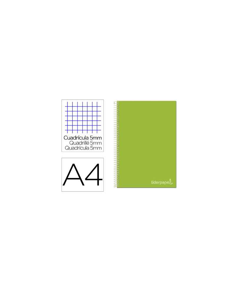 Cuaderno espiral liderpapel a4 micro jolly tapa forrada 140h 75gr cuadro 5mm 5 bandas 4 taladros color verde