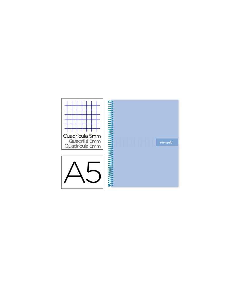 Cuaderno espiral liderpapel a5 micro crafty tapa forrada 120h 90gr cuadro 5mm 5 bandas 6 taladros color celeste
