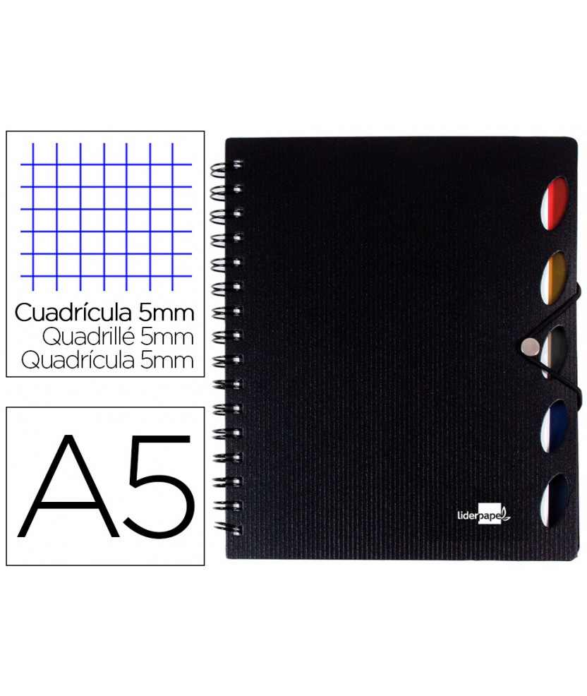 Cuaderno espiral liderpapel a5 micro executive tapa plastico 100h 80gr cuadro 5mm 5 se paradores con gomilla negro