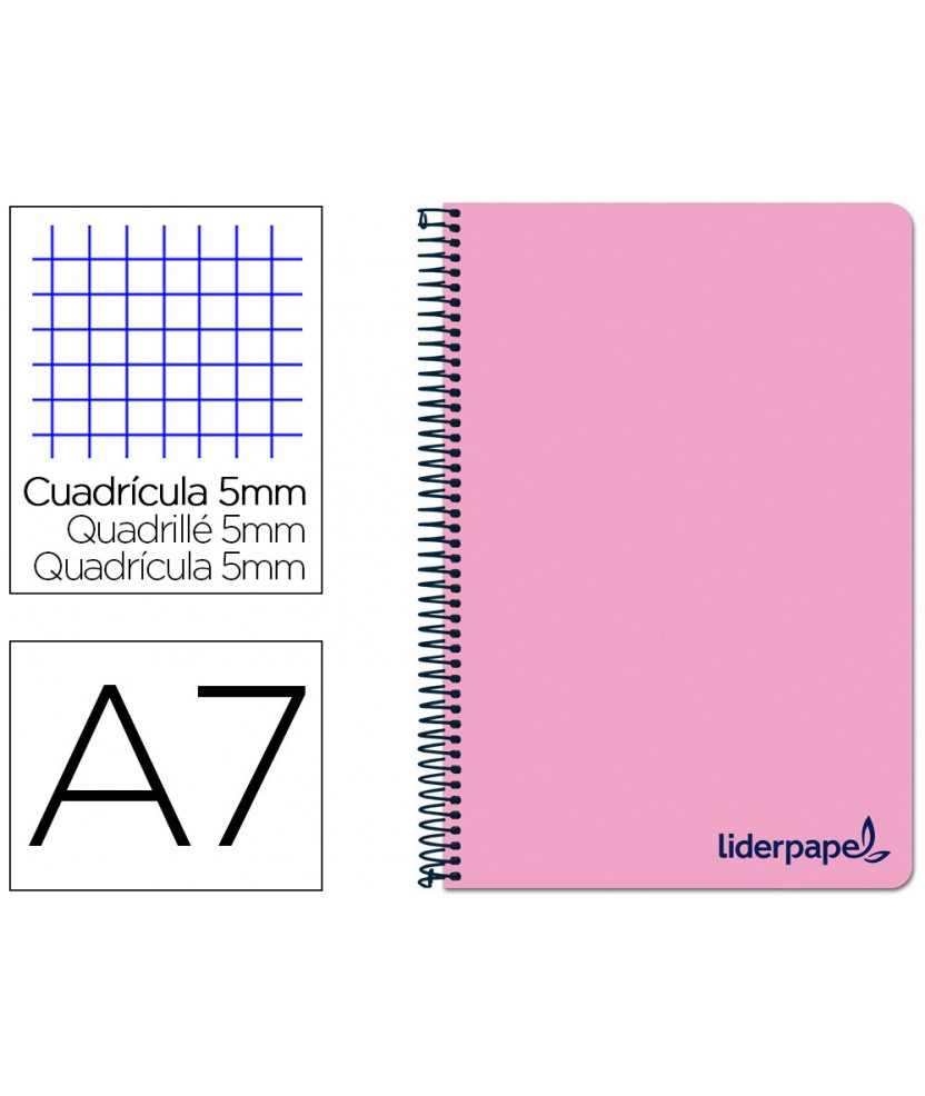 Cuaderno espiral liderpapel a7 micro wonder tapa plastico 100h 90gr cuadro 5mm 4 bandas color rosa