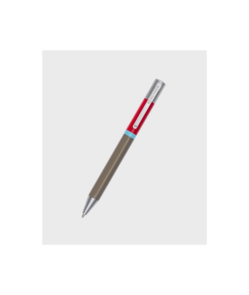 Bolígraf de qualitat amb acció giratòria, cos d'acer inoxidable i un pes equilibrat que proporciona una escriptura còmoda i fluida. La tinta és negra i recanviable tipus C1. Combina materials com llautó i ferro per donar-li solidesa i durabilitat. El disseny és elegant i funcional, ideal per a ús diari o com a detall refinat. Mides: 13 cm.