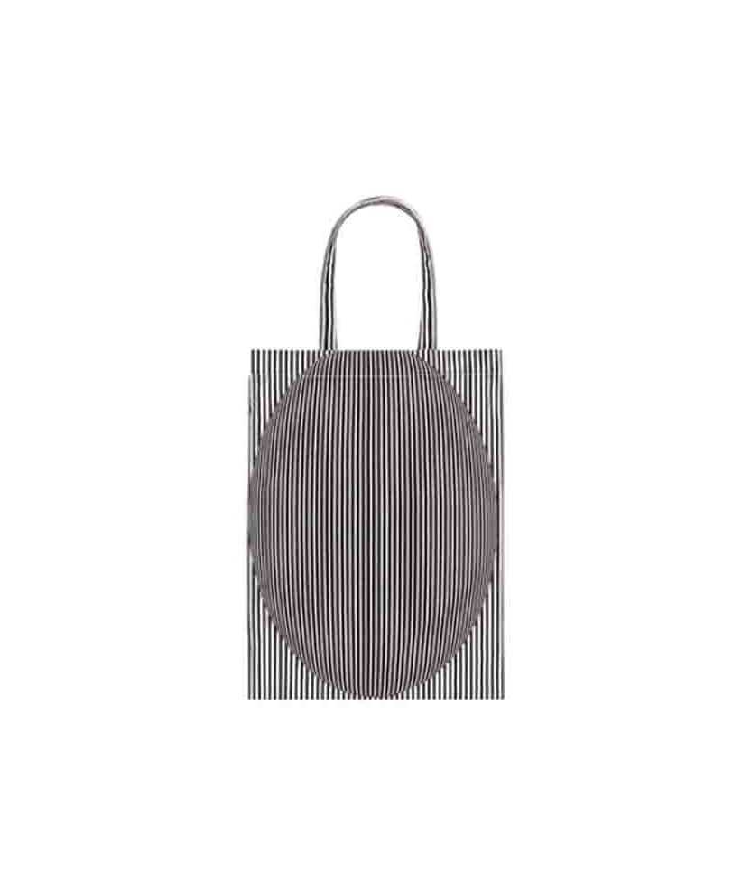 Bossa de cotó sarja de 260 g/m² dissenyada per Dunja Jankovic dins The Bag Project. Estampada amb tintes de base d'aigua mitjançant serigrafia, mostra un patró de línies propi de la seva obra visual. Pensada per a ús quotidià per la seva capacitat i resistència. Es pot rentar fins a 30 °C. Mides: cos 55x45 cm, butxaca interior 29x23 cm, nanses 60x3 cm.