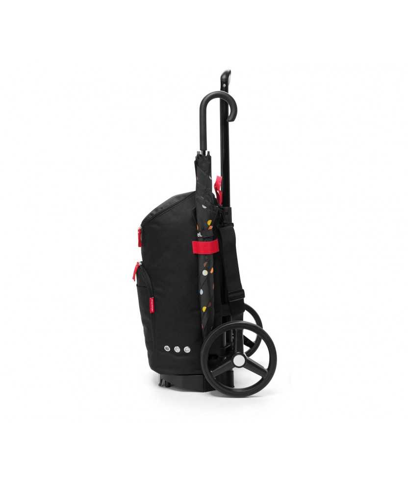 Bossa intercanviable de 45l de color negre amb diferents compartiments tancats amb cremallera per a carret de compra d'estructura amb rodes desmontable, base plegable amb mànec telescòpic, i capacitat de fins a 20kg. El carret es ven per separat. Mides: 47,5x105,5x39 cm.