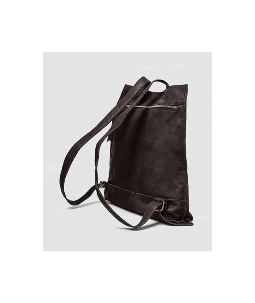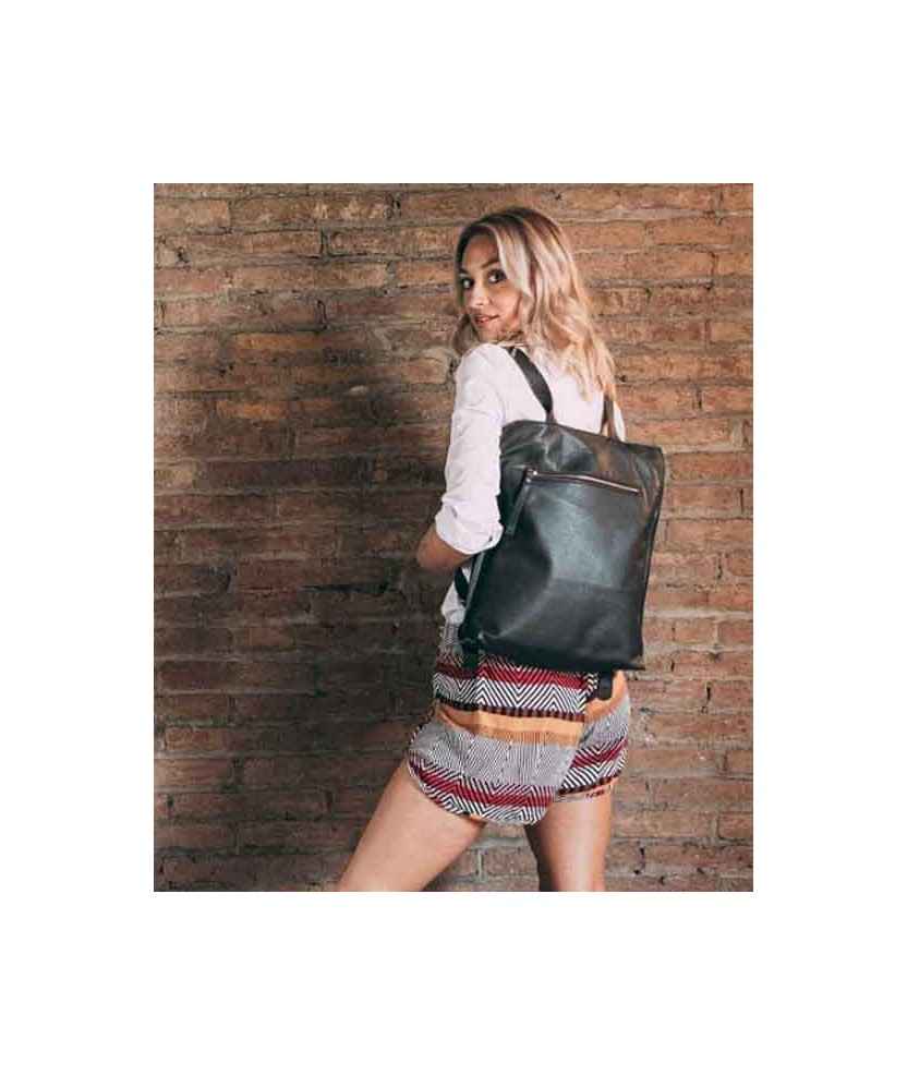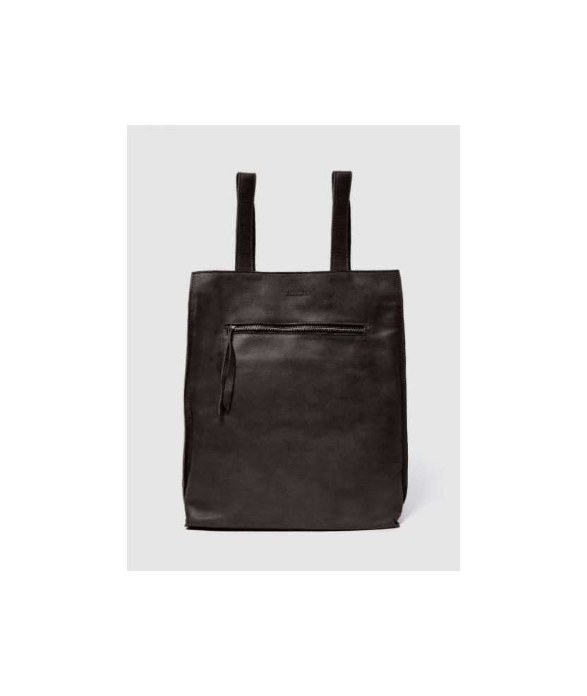 Motxilla de formes minimalistes confeccionada en pell flor de boví. L'interior presenta un folre tèxtil que protegeix la pell i aporta més comoditat. Disposa de dos compartiments exteriors amb cremallera i una butxaca interior també amb cremallera. Dissenyada per l'equip de Nadal & Co i elaborada artesanalment a mà amb una gran cura pels detalls. Mides: 30x37x8 cm.