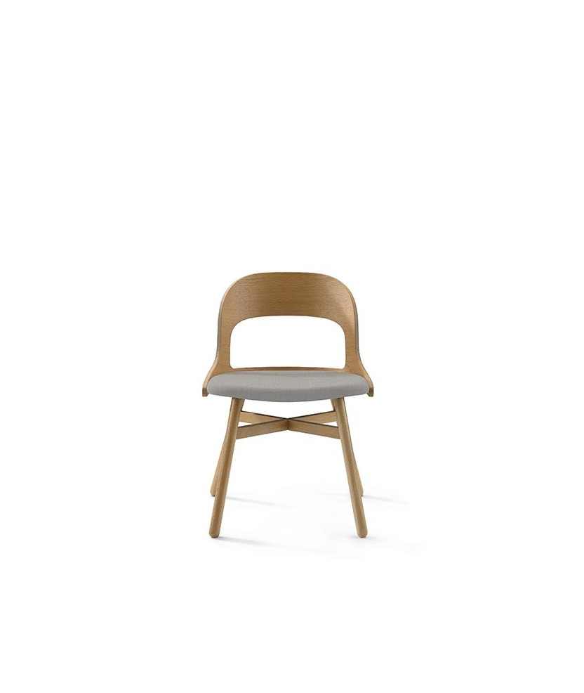 La cadira Be Wood és un clàssic contemporani, una contradicció tan pura com la seva ànima de fusta. Les seves formes li confereixen un aspecte notable i distintiu. Aquest model té l'estructura de làmines de fusta de roure i el seient de teixit gris clar. Sense braços i amb 4 potes. Mides: 52,5x57,5x75 cm.