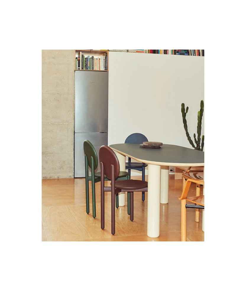 La cadira ECLIPSO de Jaime Hayon per a BD Barcelona reflecteix l'esperit lúdic i la precisió de la col·lecció ECLIPSO. Amb potes de fusta massissa de faig i un seient i respatller en contraxapat de faig, disponible en acabats lacats satinats, aquesta peça combina elegància i funcionalitat. Mides: 40 x 50 x 85,5 cm.