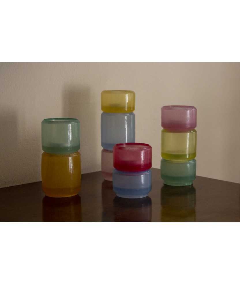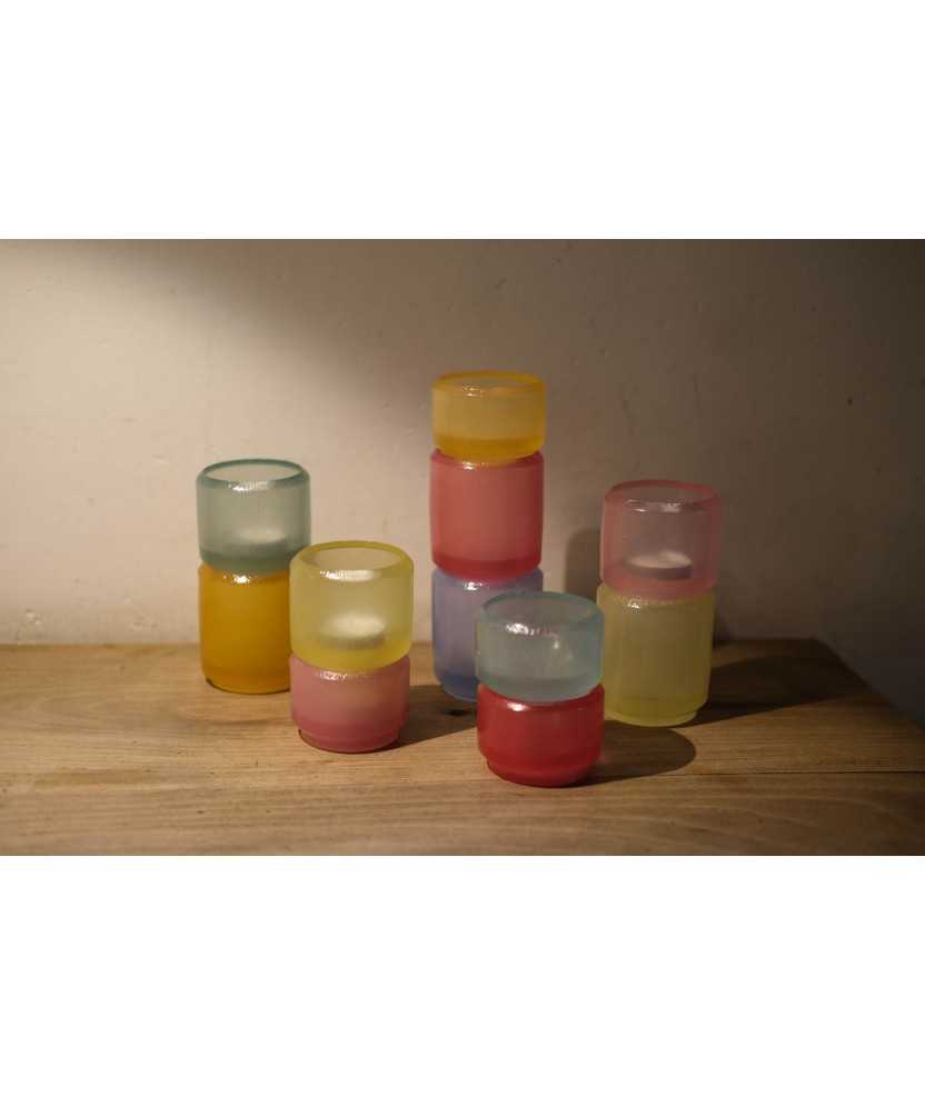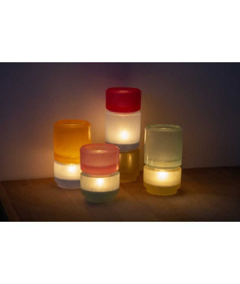 Porta espelmes fets per a la llar, que ofereixen a l'usuari innombrables combinacions gràcies a la seva diversitat en mida, color i translucidesa. La col·lecció està dissenyada per potenciar la figura de l'espelma duent-la més enllà i generant un element decoratiu molt poderós allà on es col·loqui. Fets de resina. Disponibles en 6 colors i 3 mides diferents. Mides gran: 65x75 mm. Mides mitjà: 65x60 mm. Mides petit: 65x45 mm. Elisava Alumni 2020.