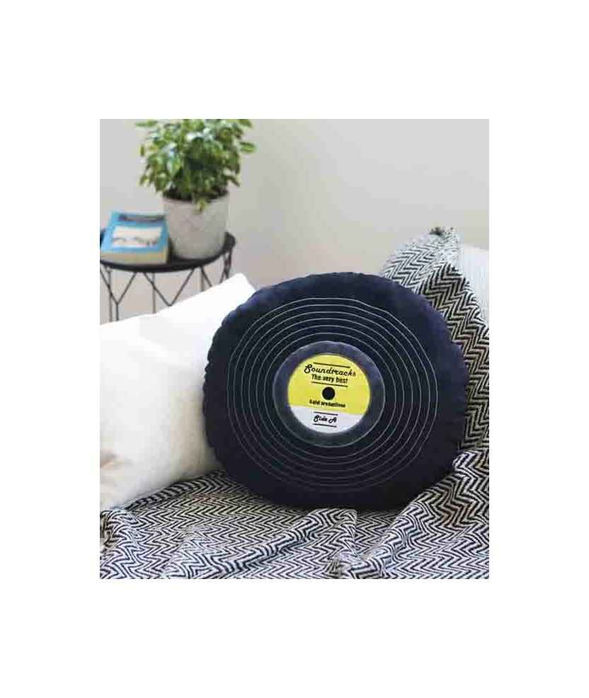 Coixí en forma de disc de vinil amb detalls brodats, fabricat en polièster de 37 cm. Molt suau i agradable al tacte, i molt adaptable gràcies al 5% de spandex, que li permet recuperar la seva forma original ràpidament. Amb un disseny divertit, aporta un toc original a qualsevol espai de la llar. No apte per a rentadora, netejar amb un drap humit. Mides: 37x37x16 cm.