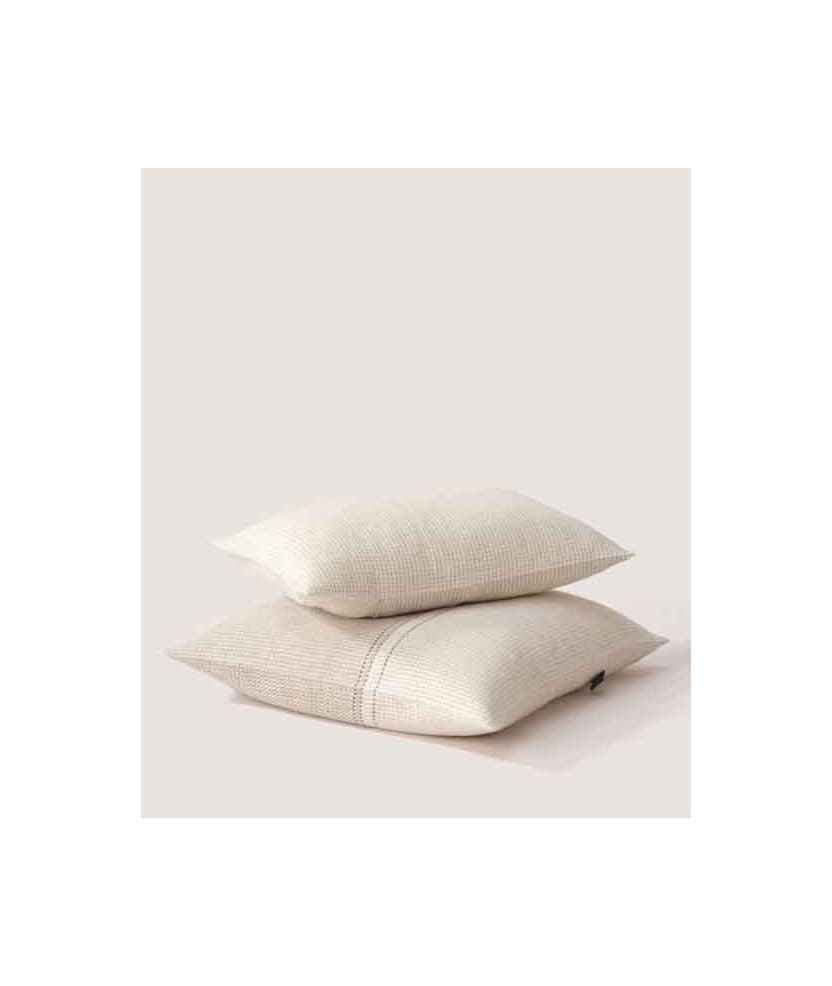 Crear una peça de lli com D'Abord en els telers manuals de Teixidors requereix d'un 'ball' de mans i peus compassat, suau i delicat. La col·lecció D'Abord es submergeix en el cor de la cultura mediterrània per oferir un disseny contemporani, fàcilment combinable en espais interiors de diferents estils. Presumeix de longevitat perquè el lli guanya bellesa amb els anys. Mides: 50x50 cm.