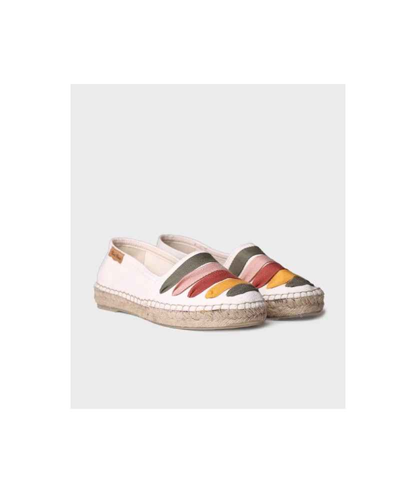 Les espardenyes Rose per a dona destaquen pel seu disseny tancat amb cintes contrastades i estil artesanal. Estan fetes de cotó amb sola de jute de 1,5 cm i base de goma antilliscant. Model vegà, cosit a mà a Espanya. Disponibles en diverses combinacions de colors: Candy (cintes de rosa, taronja i blava), Sol (cintes en negre, blau, beix, rosa i groc), Tropic (cintes en verd, groc, vermell i rosa) i Terra (cintes en tons rosats).
