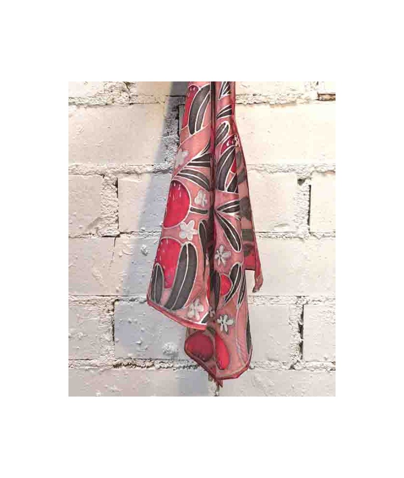 Mocador que pertany a la col·lecció 'Fruits Prohibits', de seda 100% natural del tipus ponge 05 i de mides 45x45cm pintat a mà amb la tècnica de la guta. És un producte artesà de creació sostenible fet amb seda de primera qualitat i amb una vida útil molt llarga. Consta del Distintiu d'Artesania atorgat per CCAM i la Generalitat de Catalunya.
