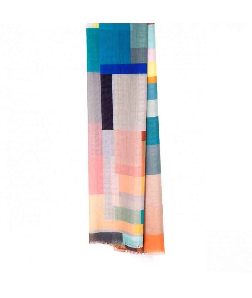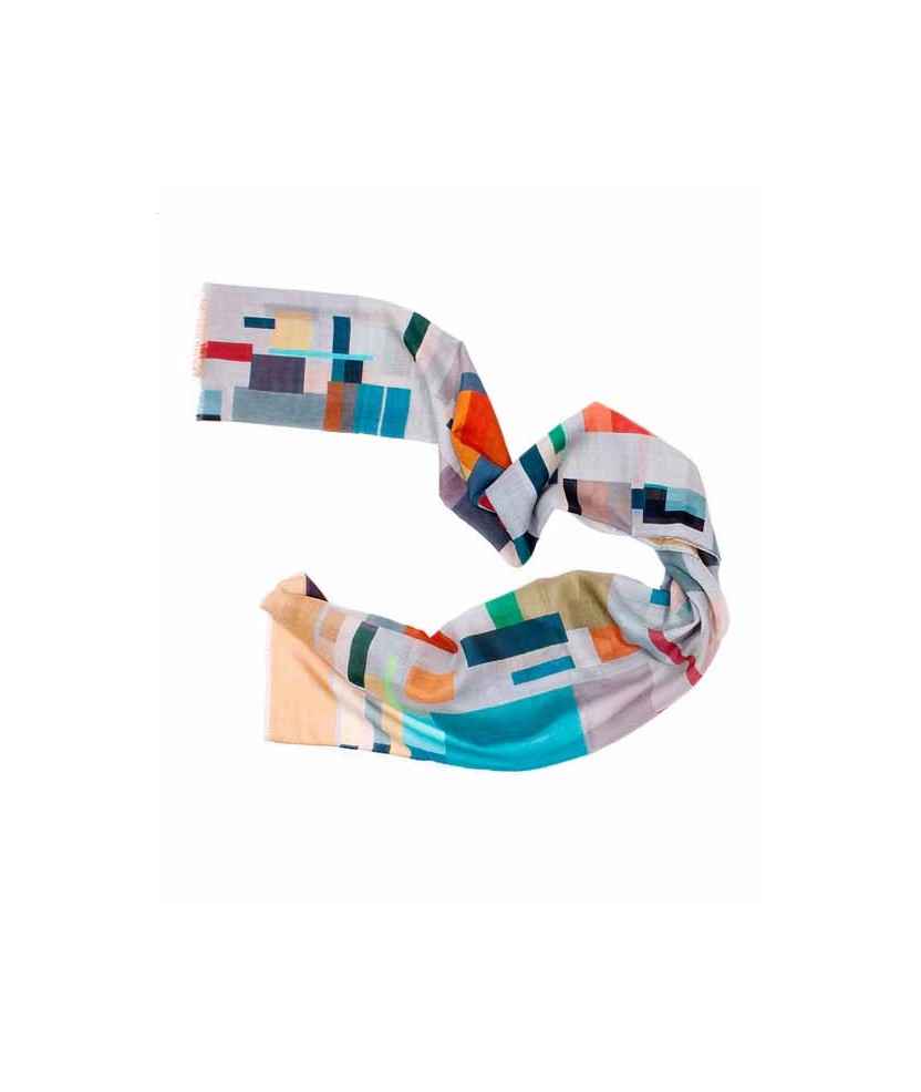 Mocador suau i molt agradable al tacte amb la pell, amb una caiguda bonica. Pertany a la col·lecció Tons, impregnada per l'abstracció geomètrica inherent en l'obra pictòrica que Ona Boix duu a terme en paral·lel al disseny tèxtil, on el color n'acaba sent el protagonista indiscutible. Teixit de lligament tafetà lleuger elaborat amb fibres fines de llana i seda. Disponible en vuit combinacions de colors. Mides: 68x165 cm.