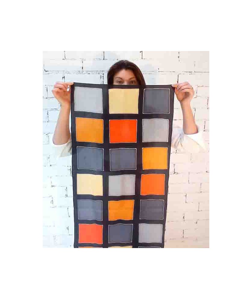 Mocador que pertany a la col·lecció 'Alta Artesania', de seda 100% natural del tipus ponge 08 i de mides 180x45cm pintat a mà amb la tècnica de la guta. És un producte artesà de creació sostenible fet amb seda de primera qualitat i amb una vida útil molt llarga. Consta del Distintiu d'Artesania atorgat per CCAM i la Generalitat de Catalunya. Són sèrie limitada de 20 unitats amb certificat d'autenticitat únic per cada peça i signatura de l'artista.