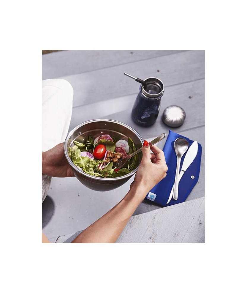 Carmanyola ideal per transportar amanides i gaudir-les amb la màxima frescor. Fabricada en acer inoxidable, és lliure de BPA/BPS. Per emmagatzematge a curt termini. Inclou: un bol (1.9L), un contenidor de condiments (60ml), una safata extraïble i una tapa transparent i impermeable. Apta per a rentavaixelles. Disponible en diversos colors. Mides: 19x21x11 cm.