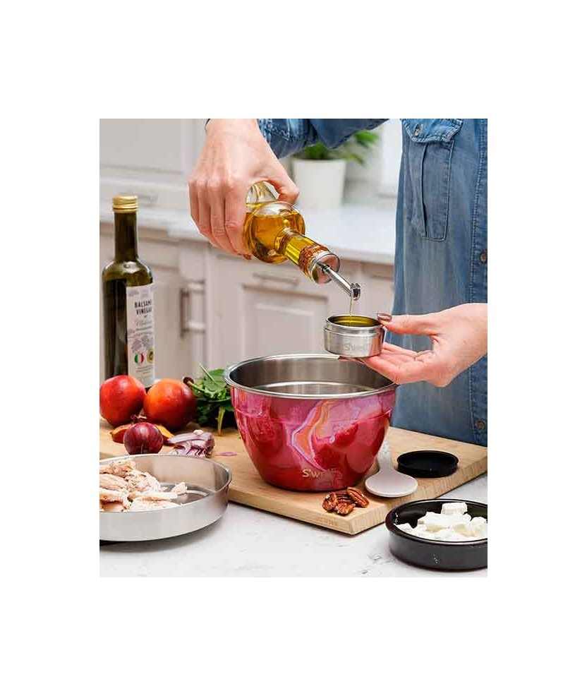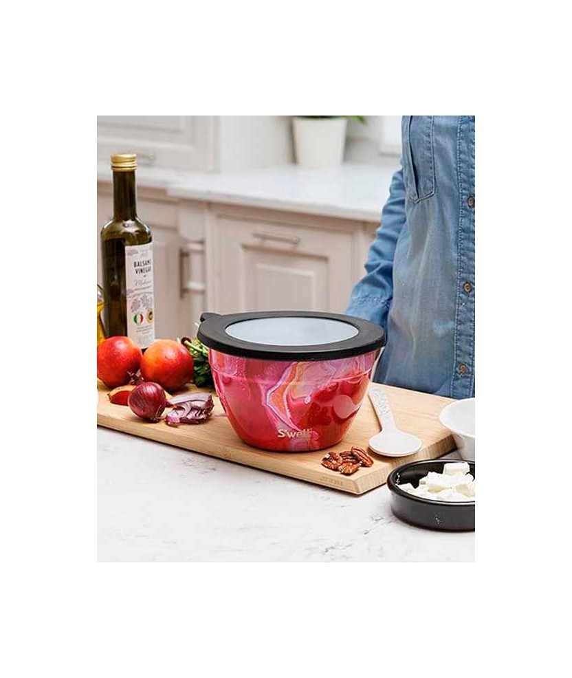 Carmanyola ideal per transportar amanides i gaudir-les amb la màxima frescor. Fabricada en acer inoxidable, és lliure de BPA/BPS. Per emmagatzematge a curt termini. Inclou: un bol (1.9L), un contenidor de condiments (60ml), una safata extraïble i una tapa transparent i impermeable. Apta per a rentavaixelles. Disponible en diversos colors. Mides: 19x21x11 cm.