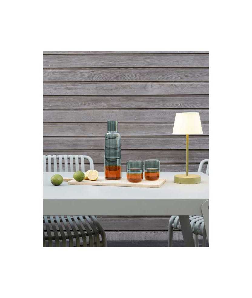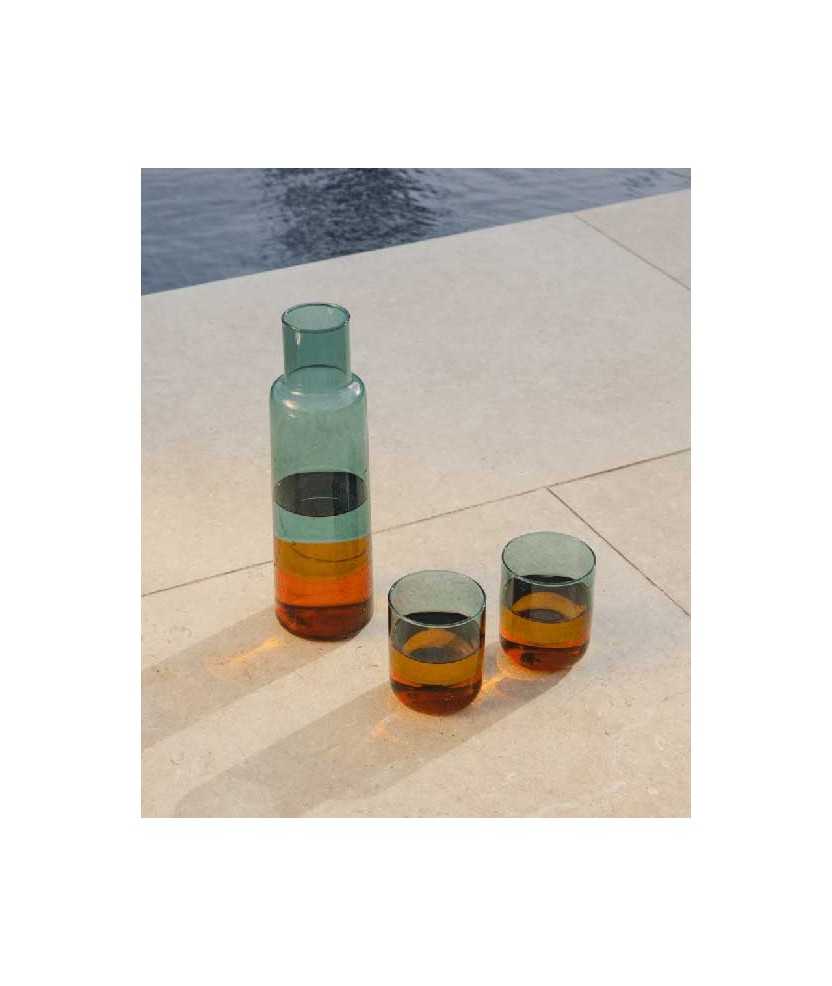 Gerra que dóna un toc destil a la taula. Feta de vidre borosilicat, un material fi i lleuger que a més és molt estable i resistent als canvis de temperatura. Quan s'omple amb begudes, el color canvia i es crea un joc de colors encantador. Apta per a rentaplats, microones i resistent a la calor fins a 300 °C. Mides: 28 cm, Ø 9 cm.