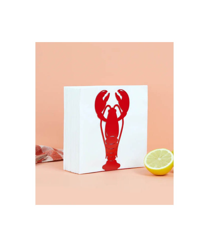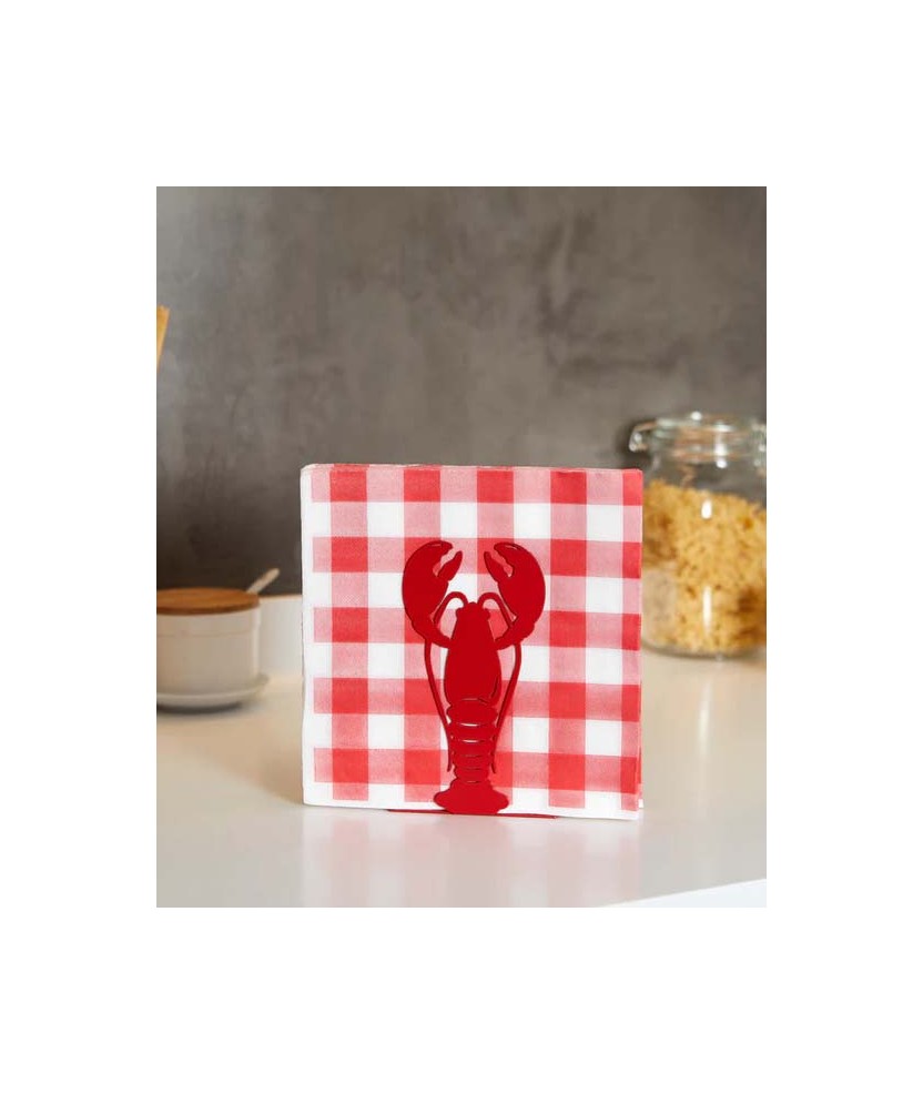 Servilleter de metall amb forma de llagosta en color vermell viu, que aporta un toc divertit i elegant a la cuina o al menjador. Capacitat per a uns 30 tovallons de paper. Base antilliscant i fàcil de netejar amb un drap humit. Material: metall. Mides: 16x10x5,3 cm.