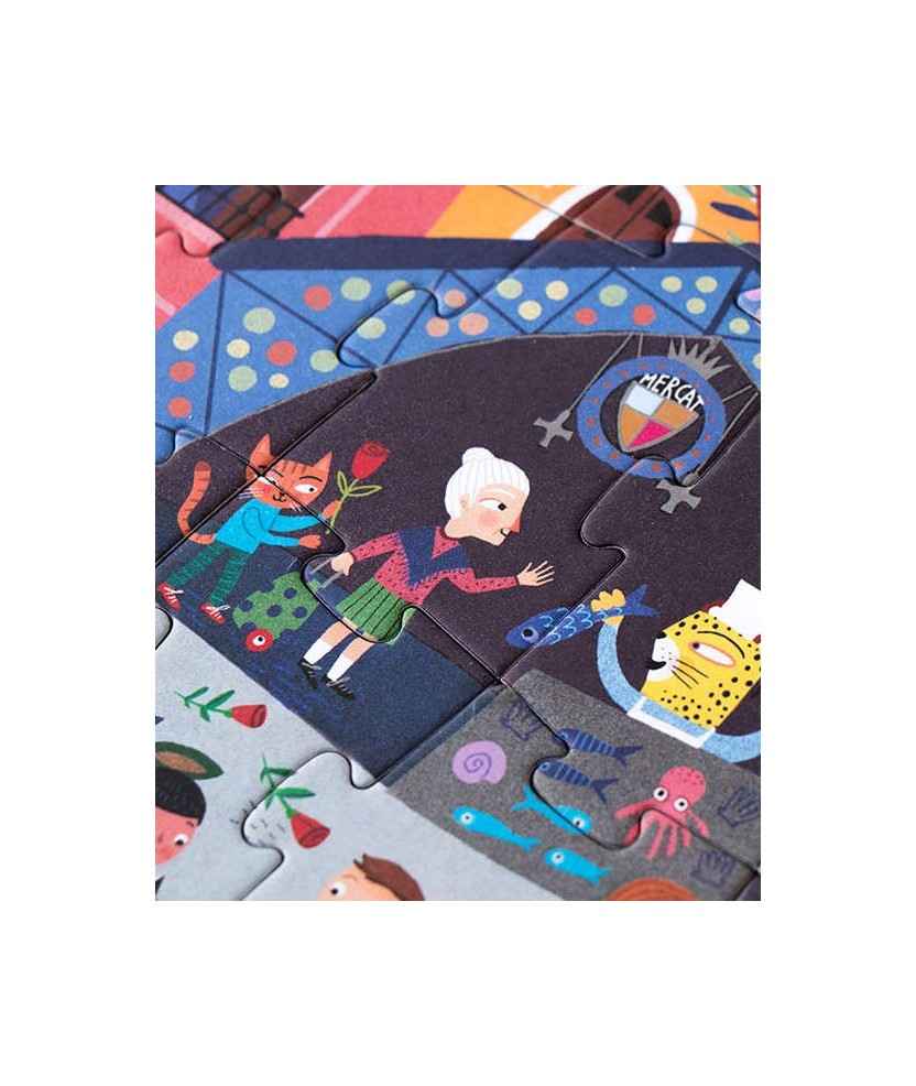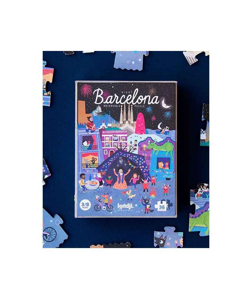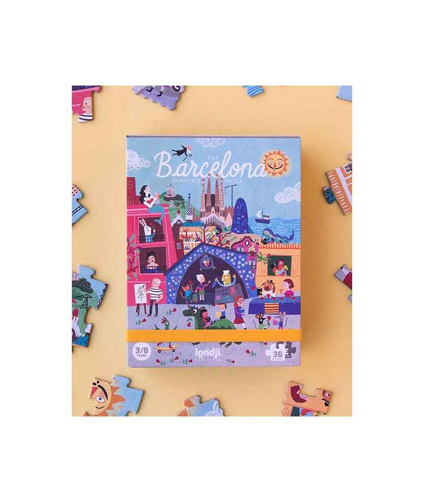 Vine a passejar per Barcelona amb nosaltres i descobreix els seus habitants il·lustres i festes populars. Un puzle reversible de 36 peces amb dues visions de la ciutat: el dia de Sant Jordi i la màgica nit de la revetlla de Sant Joan, amb il·lustracions dels llocs més emblemàtics. Una manera divertida i educativa de conèixer la cultura i tradicions de Barcelona.
