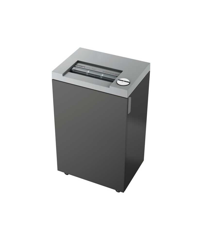 Destructora de documents amb sistema de seguretat SPS, botó multifunció EASY-SWITCH i retrocés i bloqueig automàtic que evita l'aturament de paper quan el contenidor està ple. Tancament electrònic de la porta amb commutador magnètic. Mode de desconnexió Zero Energy. De fusta d'alta qualitat amb rodes. Capçal de tires de 4 mm. Capacitat de 8-12 fulls. Mides: 63,5 x 39,5 x 29 cm.