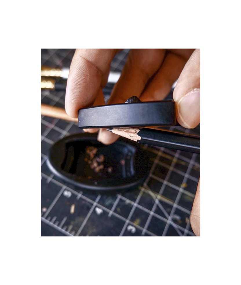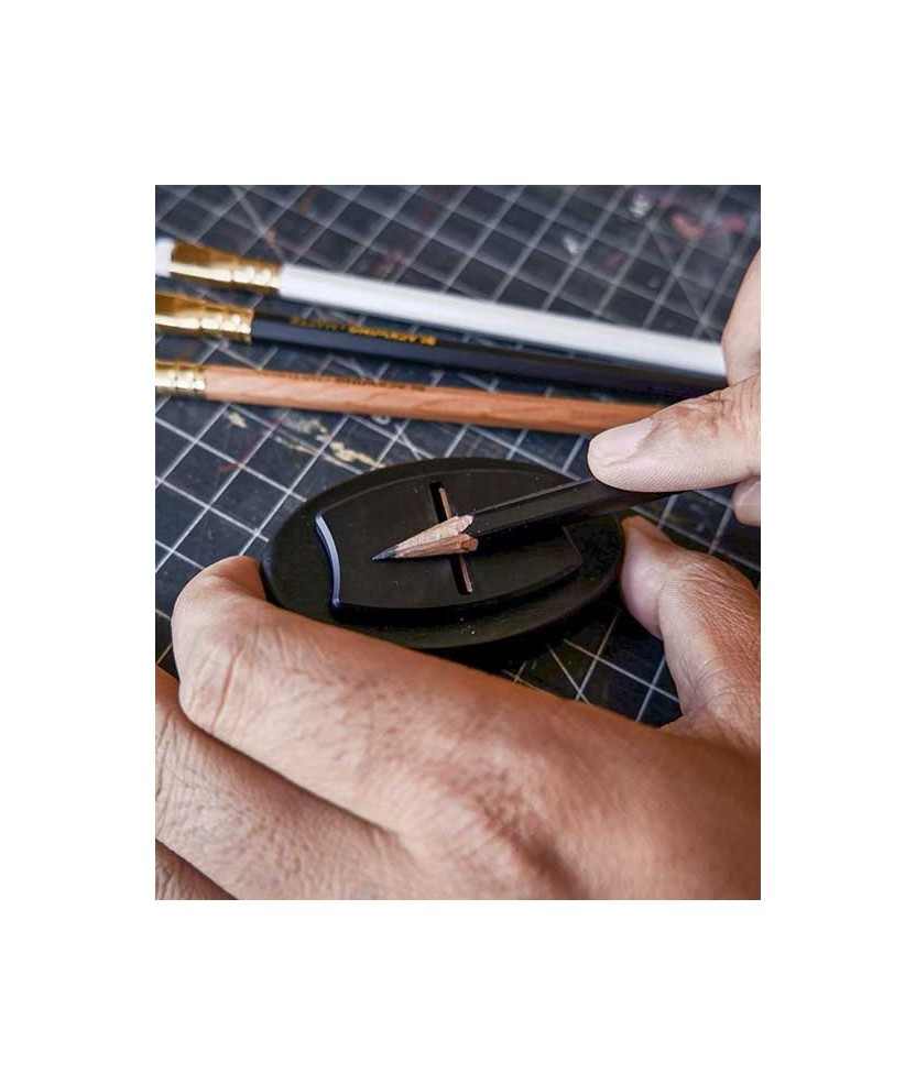 L'esmolamines Blackwing Høvel permet crear puntes de llapis personalitzades adaptades a les necessitats específiques. Està fabricat amb alumini anoditzat negre i inclou una base de fusta negra a joc. També inclou 10 fulles de recanvi d'acer de carboni.