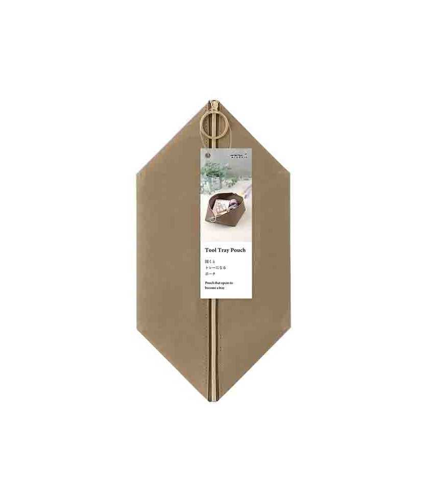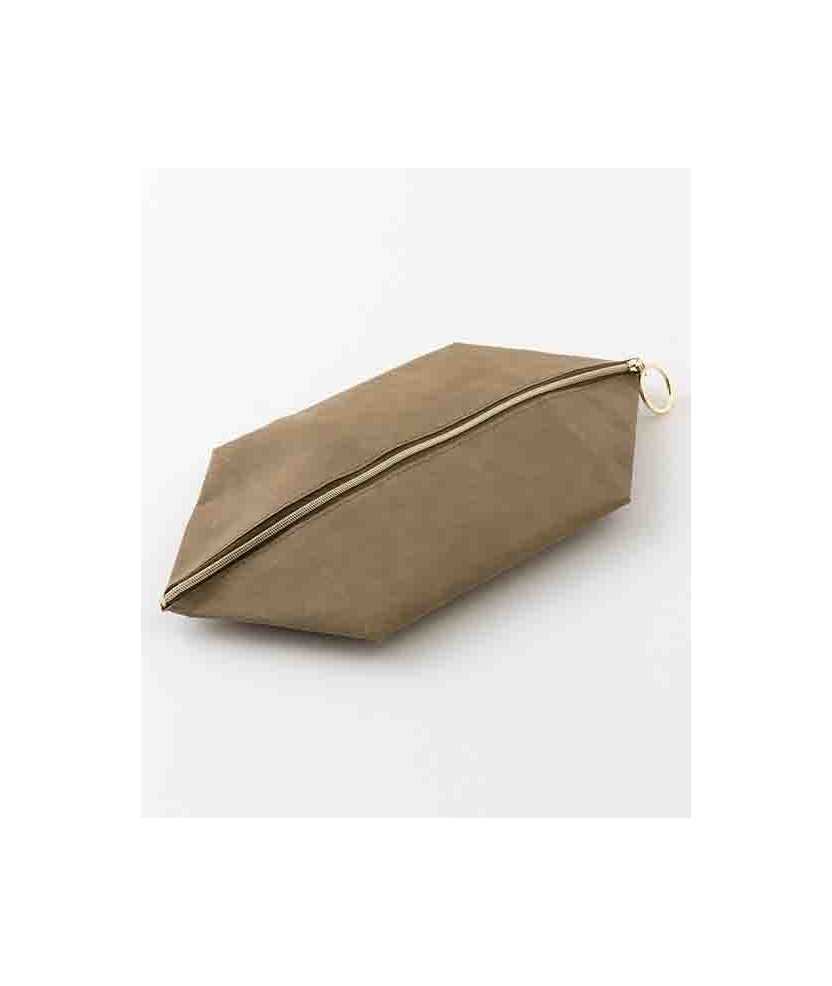Aquest estoig per a eines està fabricat principalment amb paper prim i lleuger, però destaca per la seva durabilitat i flexibilitat, resistint esquinçaments fins i tot quan està mullat. La seva fermesa és la justa perquè, en obrir la cremallera, es transformi en una safata pràctica que facilita col·locar i retirar objectes. A més, amb l'ús, l'estoig es torna més suau i còmode al tacte, desenvolupant una textura única. Mesures: 31 x 16 cm