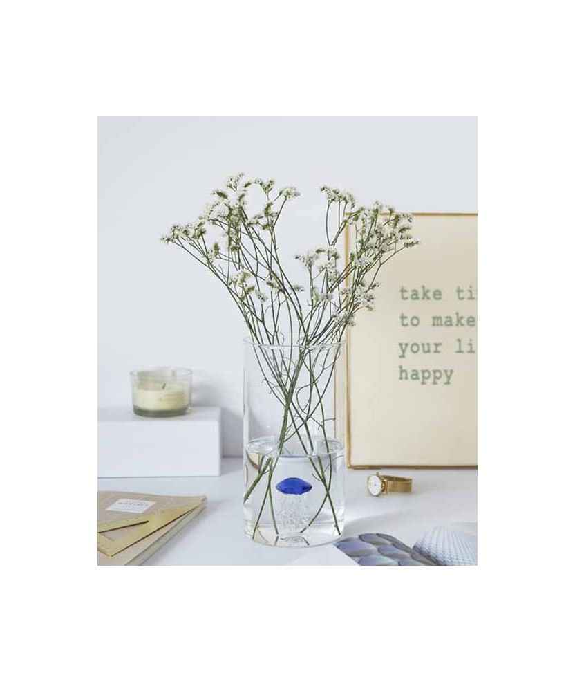 El gerro Atlantis destaca pel seu disseny original amb una medusa de vidre blau que sembla flotar a l'interior. Fabricat en borosilicat, és resistent i perfecte per col·locar flors de tija llarga sense temor que caiguin. El seu estil elegant el fa ideal per decorar qualsevol racó de casa o oficina. És un regal únic per als que gaudeixen de peces decoratives amb un toc marí i sofisticat. Mides: 19x10x10 cm.