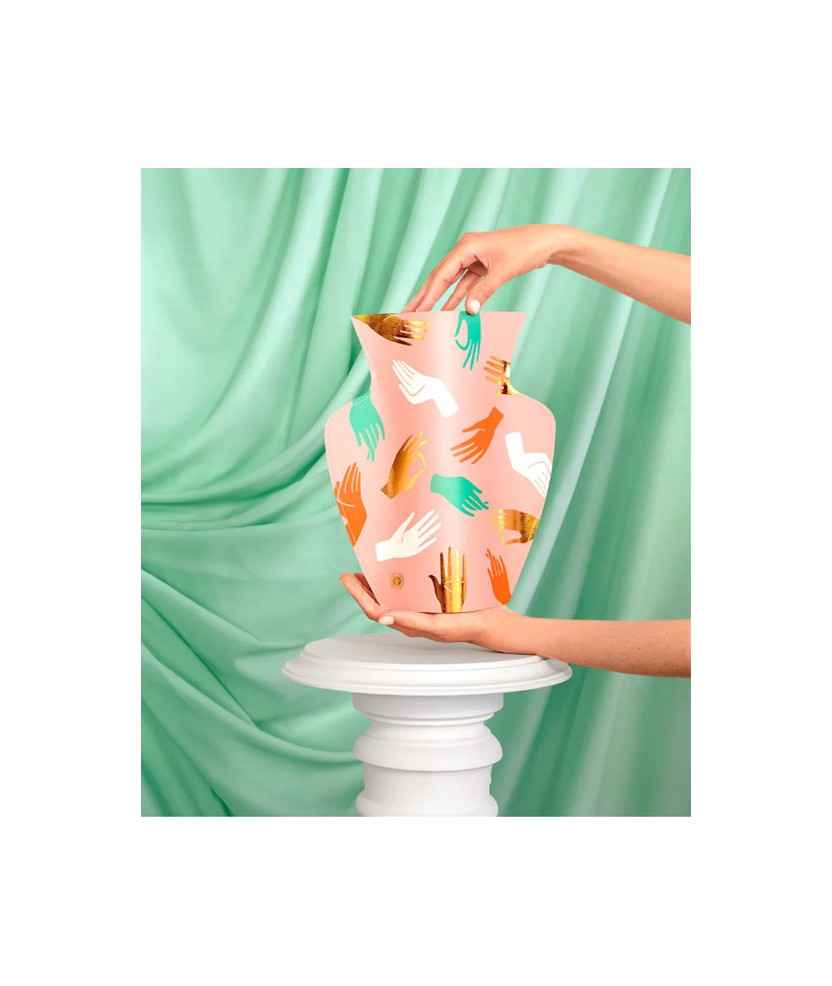 Aquest gerro de flors artesanal us porta a un viatge pel Mediterrani. Està fet de paper especial resistent a l'aigua. És ideal per adornar el teu escriptori o taula de menjador. Deixa que la teva imaginació floreixi. Per utilitzar-lo, introdueix al gerro obert una ampolla de plàstic, un recipient de vidre o de ceràmica de mida mitjana. Omple el recipient amb aigua fins a la meitat i col·loca'l sobre una superfície plana. Mides: 26,5x29 cm.