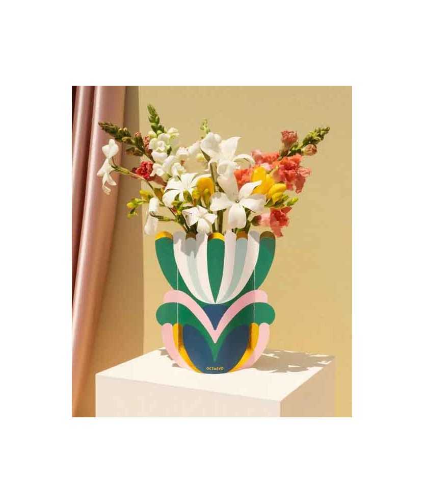 Mini gerro Elysia fet en paper especial impermeable de 180 gr. Impressió offset amb detalls metàl·lics, laminat i cosit a mà. Peça decorativa lleugera i elegant, perfecta per sobretaula, escriptori o aparador. Inspirat en la mitologia grega, combina estil i originalitat en un disseny exclusiu. Mides: 16,8 x 16,8 cm.