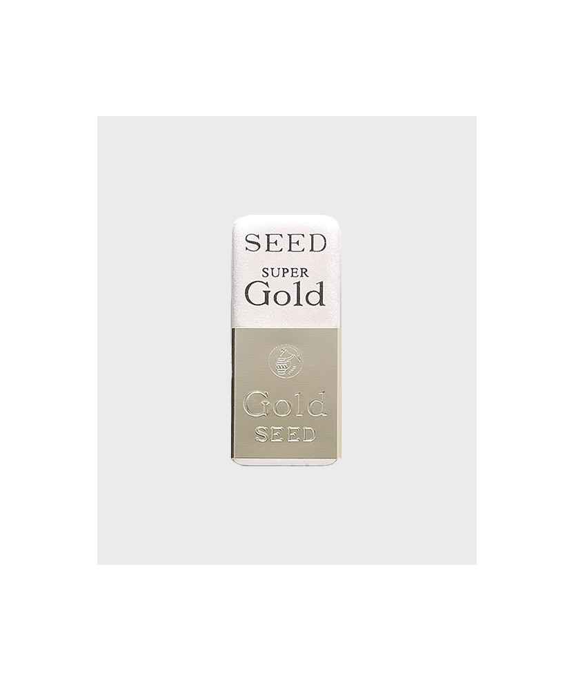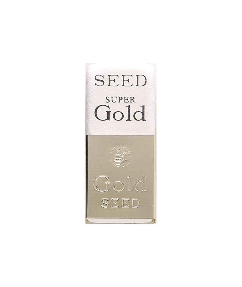 Goma d'esborrar Super Gold High Class amb faixa de metall daurada, segellada amb una marca anomenada 'tubogarasu' que significa olla i corb. Aquesta imatge està inspirada en la Història del corb d' Isop i representa el lema de la marca, la japonesa SEED. Es presenta en una capsa de regal negra. Mida total: 5x2,1x1,3 cm.