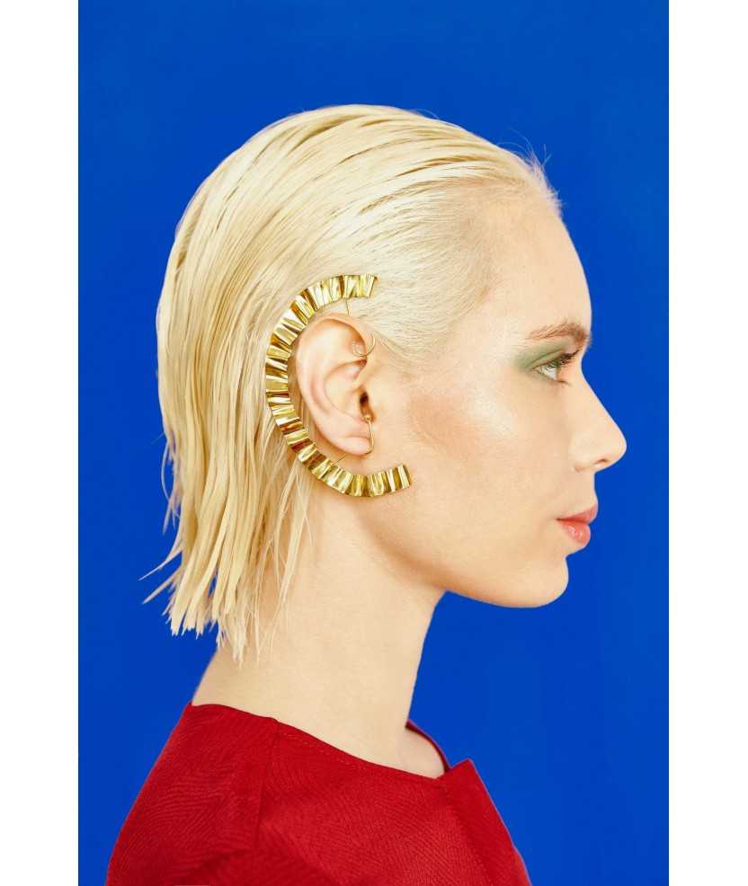 Dissenyada i fabricada localment amb amor i suor al seu taller de Barcelona, aquesta arracada és el complement perfecte per a una ocasió especial on una joia imparell marcarà la diferència. S'adapta perfectament a totes les formes d'orella, fins i tot a les que no tenen forats, esdevenint unisex. Feta a mà en plata de llei banyada amb 3 micres d'or de 18K o plata rodiada. Elisava Alumni.