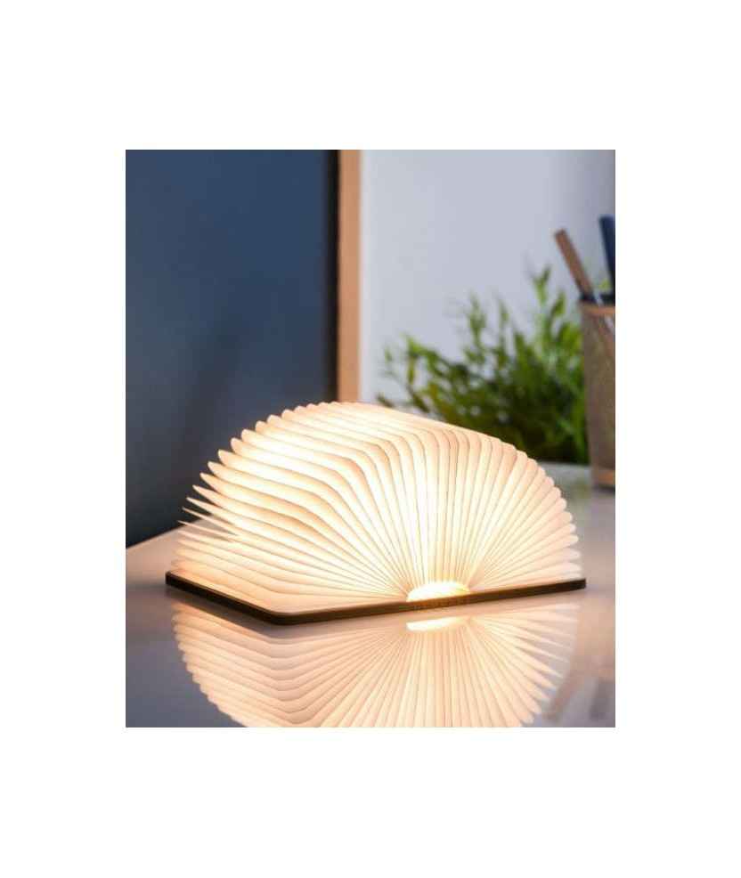 La col·lecció Smart Book Light de fusta natural és una peça d'art funcional per a qualsevol llar. Quan està tancat sembla un llibre de fusta tallat amb làser, i en obrir-lo es transforma en una làmpada escultòrica amb llum LED càlida i suau. Les pàgines de Tyvek són resistents a l'aigua i a esquinçades, i el llibre s'obre 360 ° gràcies a imants ocults. Inclou carregador micro-USB, muntatge artesanal i fins a 8 hores d'autonomia.