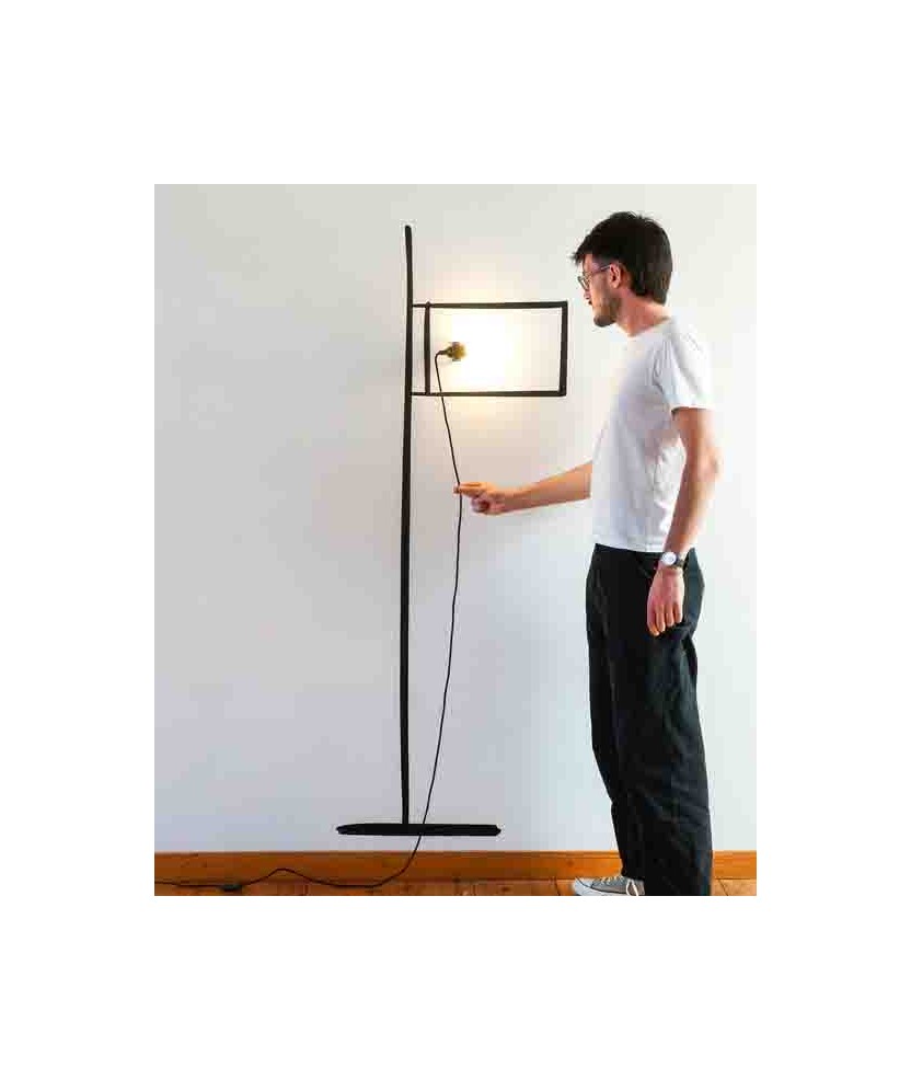 Llum de vinil adherit a la paret que recorda els grans clàssics del disseny. Pertany a la col·lecció Low-Cost lamps. El pack conté un vinil negre mate, clipatge paret-portalàmpades, portalàmpades, cable 3m + endoll + interruptor, i instruccions de muntatge. Disponible en diverses versions. Mides: 170x60 cm.