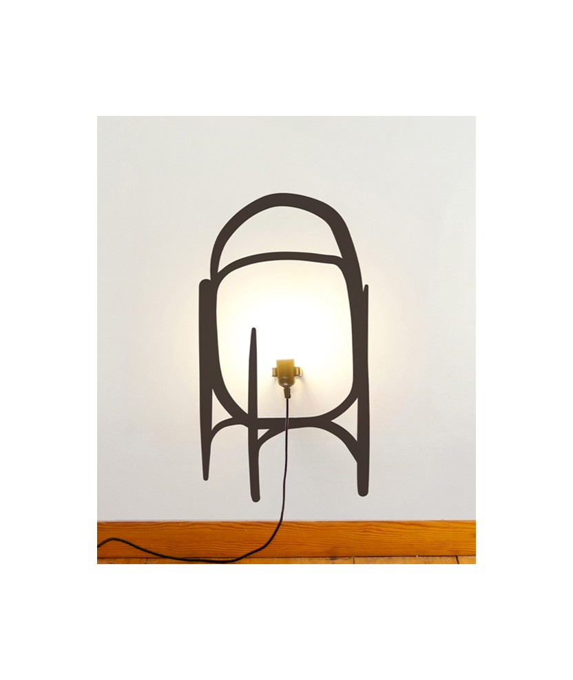 Llum de vinil adherit a la paret que recorda els grans clàssics del disseny. Pertany a la col·lecció Low-Cost lamps. El pack conté un vinil negre mate, clipatge paret-portalàmpades, portalàmpades, cable 3m + endoll + interruptor, i instruccions de muntatge. Disponible en diverses versions. Mides: 30x55 cm.