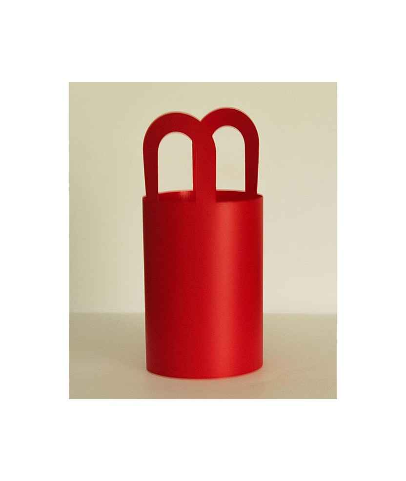 Llum de cistella per a exterior, feta amb làmines enrotllables de plakene que permeten una configuració adaptable i resistent. Inclou dispositiu LED recarregable que garanteix una il·luminació eficient i pràctica en activitats a l'aire lliure. El disseny forma part de la selecció Elisava x La Capell 2025 i destaca per la seva estètica minimalista en color vermell. Mides: 8,5x19,5 cm.