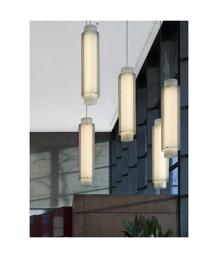 La llum de sostre Skin està dissenyada per AIA Salazar-Navarro. Un equip multidisciplinari de Barcelona que desenvolupa treballs de disseny industrial, arquitectura i enginyeria, basats en la sostenibilitat, la tecnologia i l'eficiència. Aquesta lluminària de suspensió està realitzada en polimetacrilat blanc òpal, recobert per una malla metàl·lica cilíndrica d'acer inoxidable, lacada en acer o bronze setinat. Pes: 4,2 kg. Mides: 27 x 141 x 27,5 + 17 x17 x 175 cm.