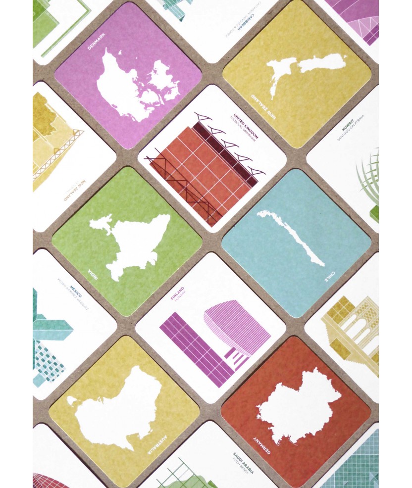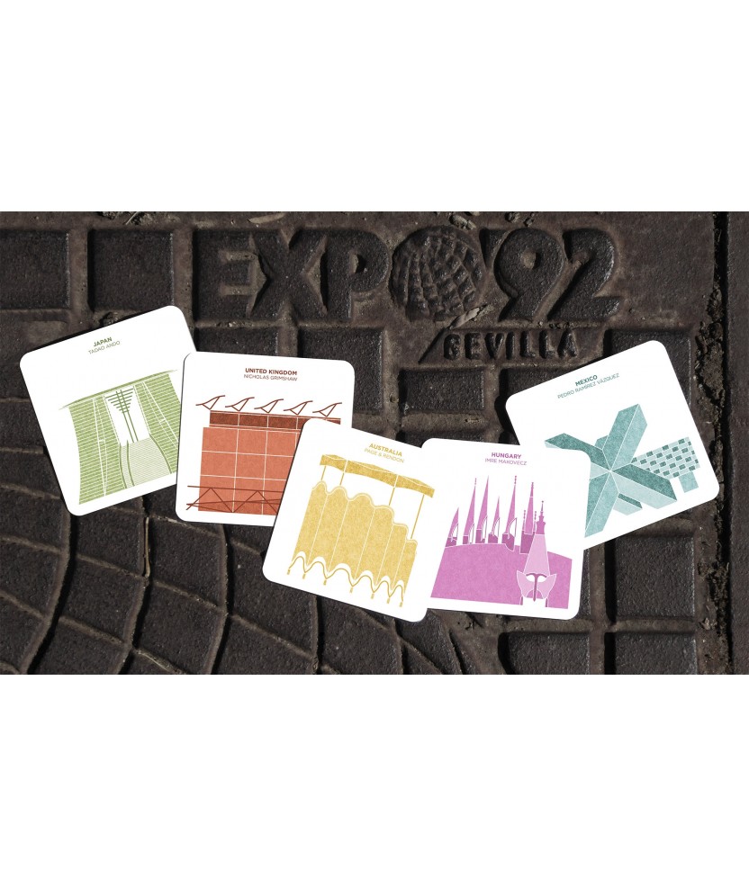 Joc de memòria que, a través del color i el dibuix, recorda l'arquitectura i els països que van formar part de la Exposició Universal de Sevilla (1992). El joc consisteix en relacionar alguns dels pavellons més representatius i vincular-los amb les seves respectives nacions i continents.