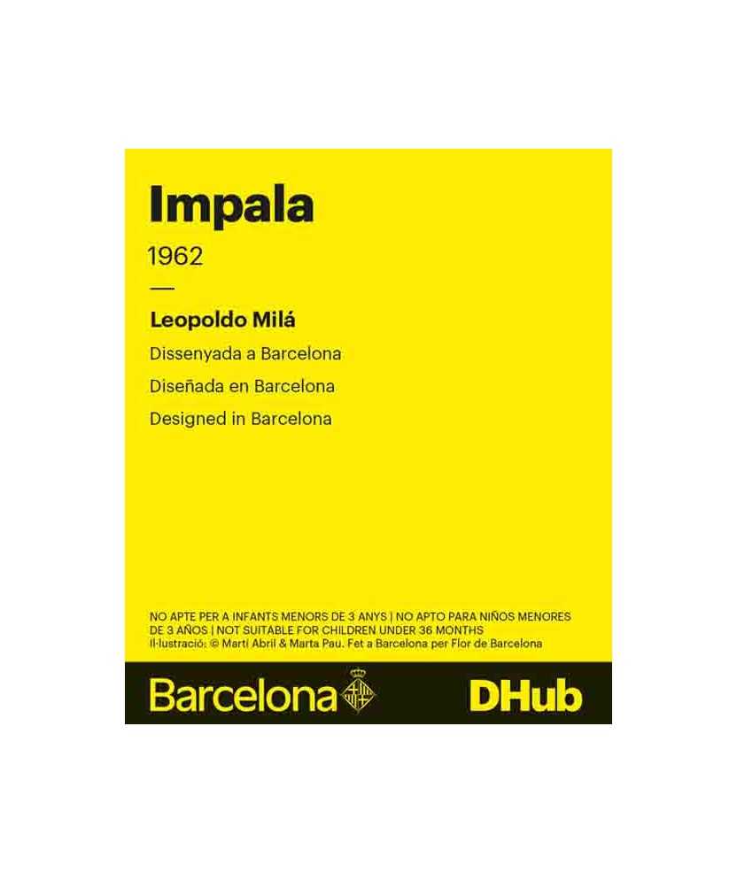 Imant que il·lustra la icònica Impala, dissenyada a Barcelona per Leopoldo Milà, un clàssic del disseny industrial. Una peça emblemàtica que combina enginyeria, funcionalitat i una estètica atemporal. Ideal com a petit regal per als amants del disseny i la cultura urbana. Il·lustració de Martí Abril i Marta Pau. Fet a Barcelona. Mides: 7 * 10 cm.